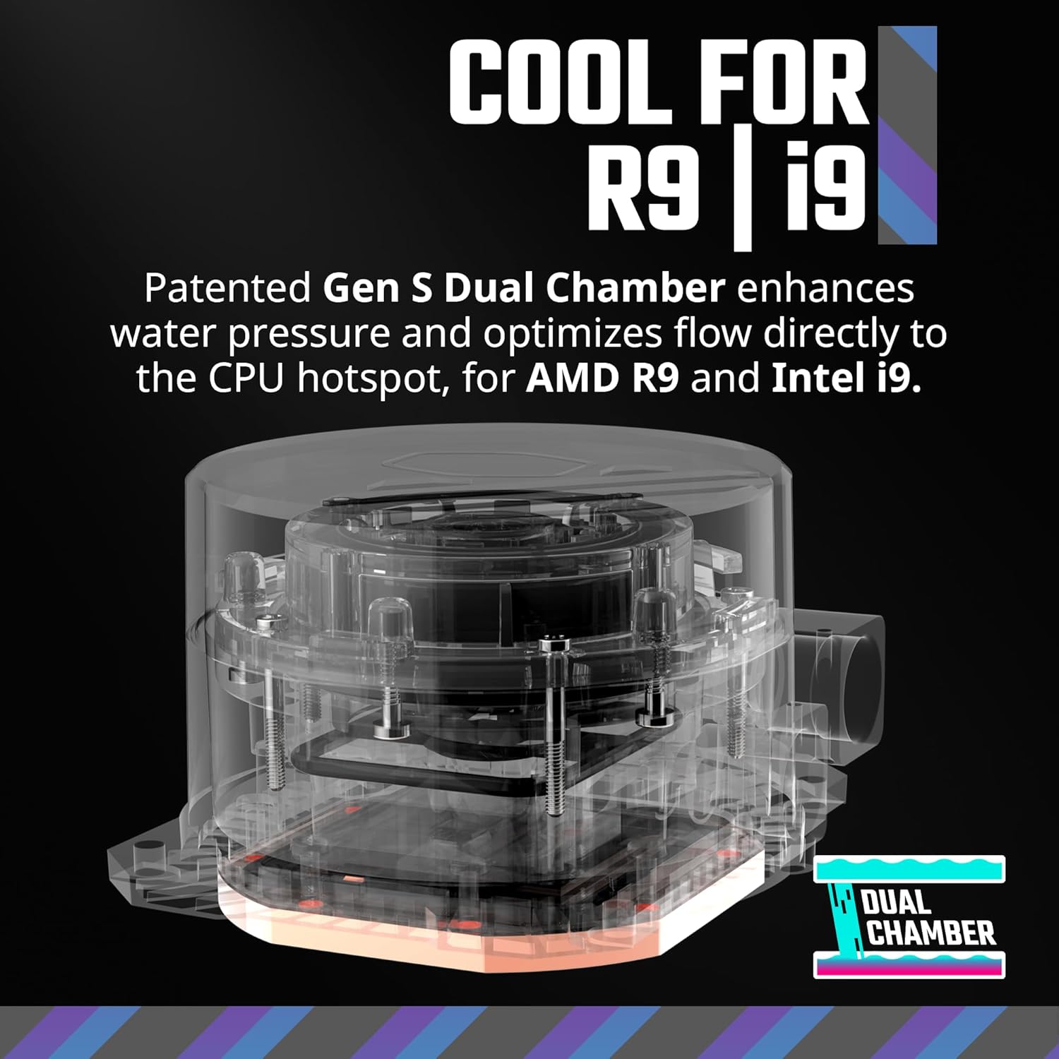 Redesigned copper base targets heat spots with precision, along with boosted water flow and pressure for enhanced cooling performance.