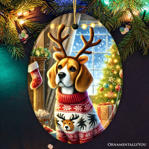 Cozy Fireplace Beagle Ornament, Snuggly Canine Christmas Gift and Decor