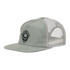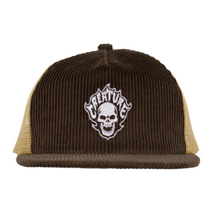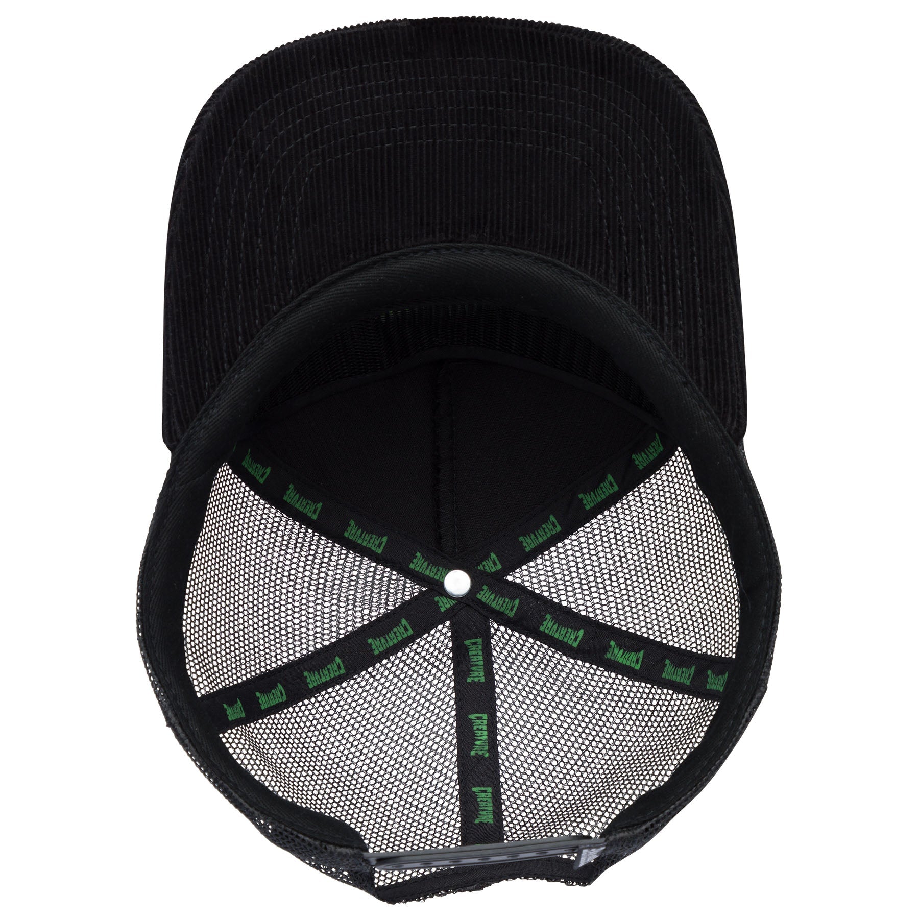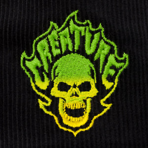 Keep it Creach' in the latest hats and apparel from Creature Skateboards. The Creature Bonehead Flame mid profile, 5 panel unstructured mesh snapback hat features corduroy crown and visor, center front direct embroidery, loop label at rear snapback adjuster and custom interior taping. Black option features a gradient embroidery. Creature Skateboards: Lurk with us.