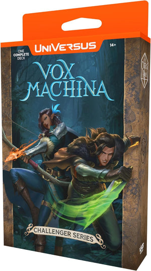 Critical Role Challenger Series: Vox Machina is an advanced, ready-to-play 60 card deck that also includes 2 character cards, a 6 card collector booster pack and a booklet.