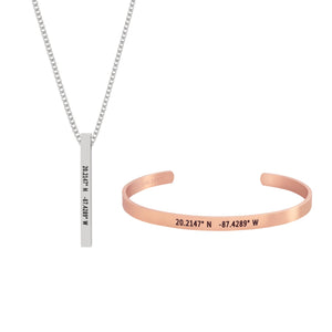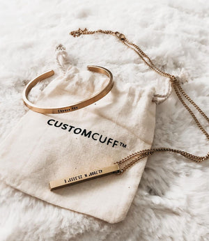 - 1 Necklace & 1 Cuff included, one for you and a loved one. Want to customize them individually? Click here