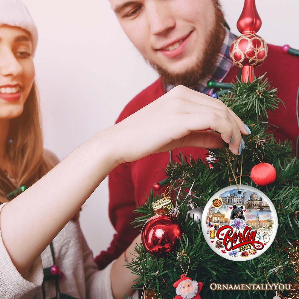 Celebrate the rich history and vibrant culture of Berlin with this beautifully detailed ornament. Featuring iconic landmarks, the city's beloved bear, and classic German treats, this ornament is perfect for anyone who holds a special place in their heart for Berlin. Whether you're gifting it to a friend who loves to travel or adding it to your own collection, this piece is a wonderful way to showcase the charm and heritage of Germany's capital city. Add a touch of European elegance to your holiday décor, or share it as a meaningful souvenir. 🎄🐻🏛️