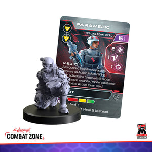 This box set includes all the miniatures and cards you need to add these Mercs to your gang in your games of Combat Zone!