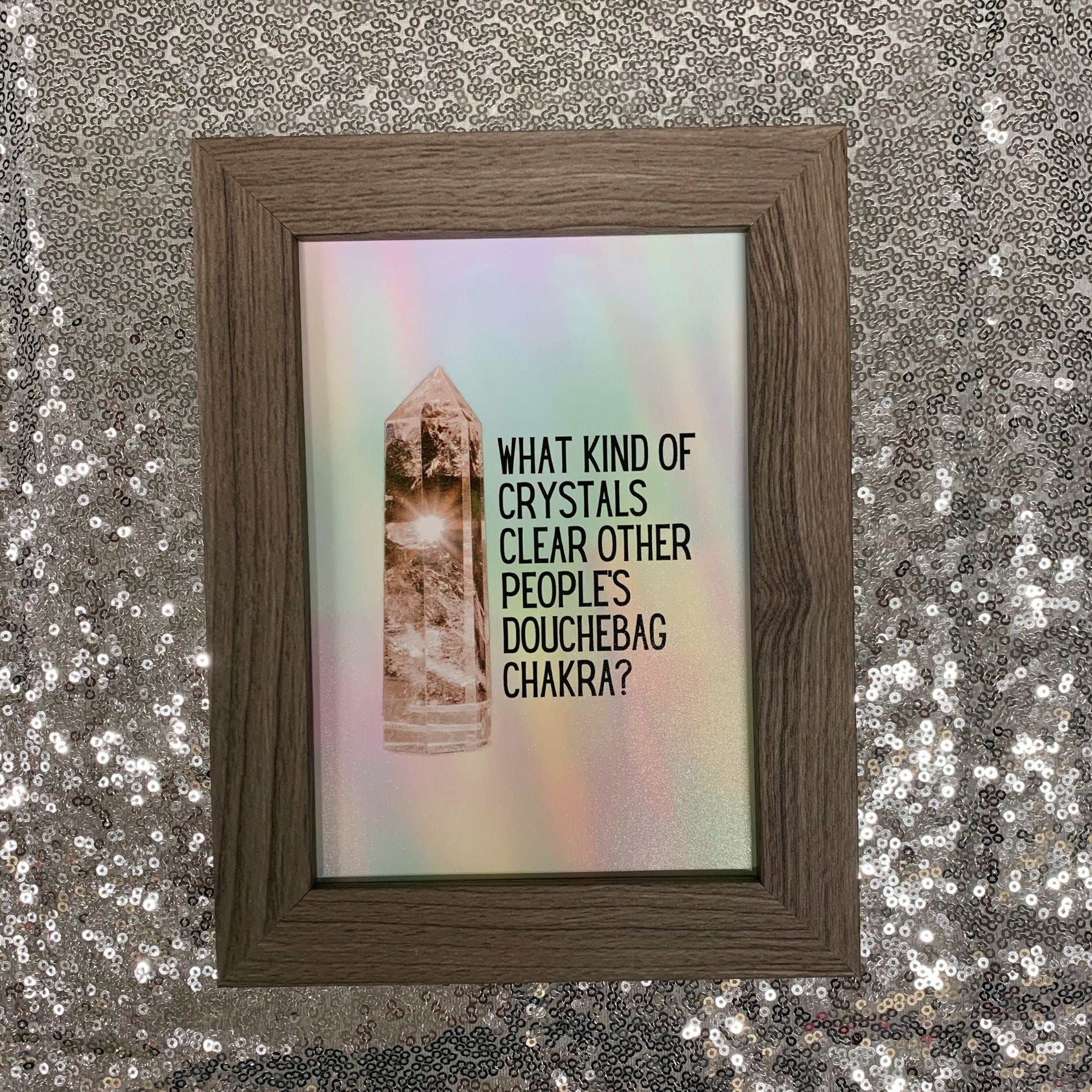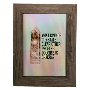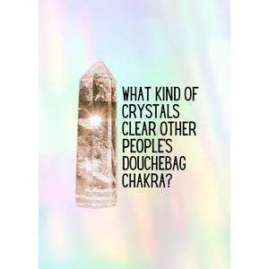 Reads "What kind of crystals clear other people's douchebag chakra?"