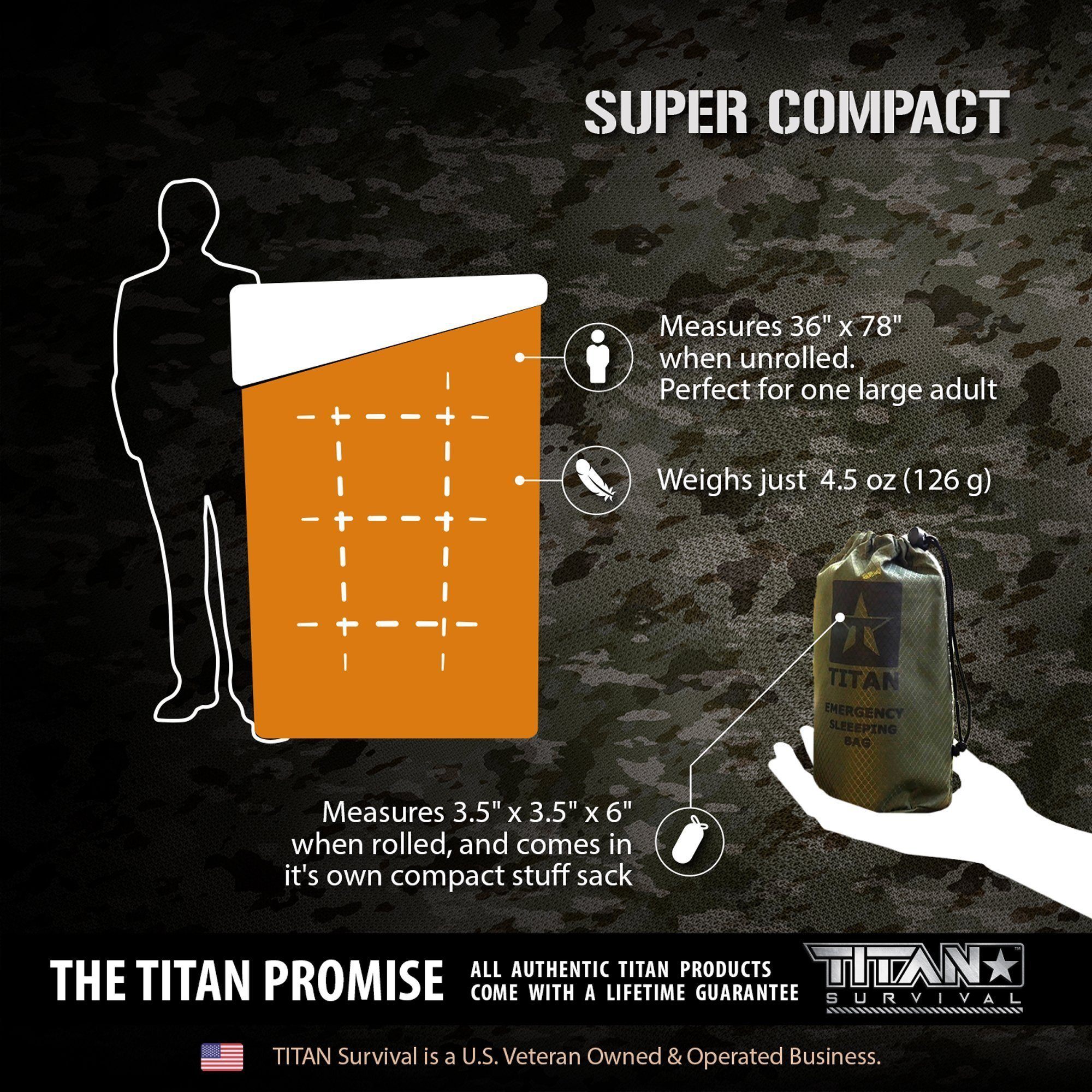 - COMPACT DESIGN – Designed to comfortably fit a single adult, each emergency sleeping bag is tear-resistant, reusable, and can be rolled and stowed in the included olive-drab Nylon drawstring bag. These sleeping bags are perfect for Backpacking, Emergency Kits, and Bug-Out Bags and can also be used as a bivy sack cover for your regular sleeping bag.