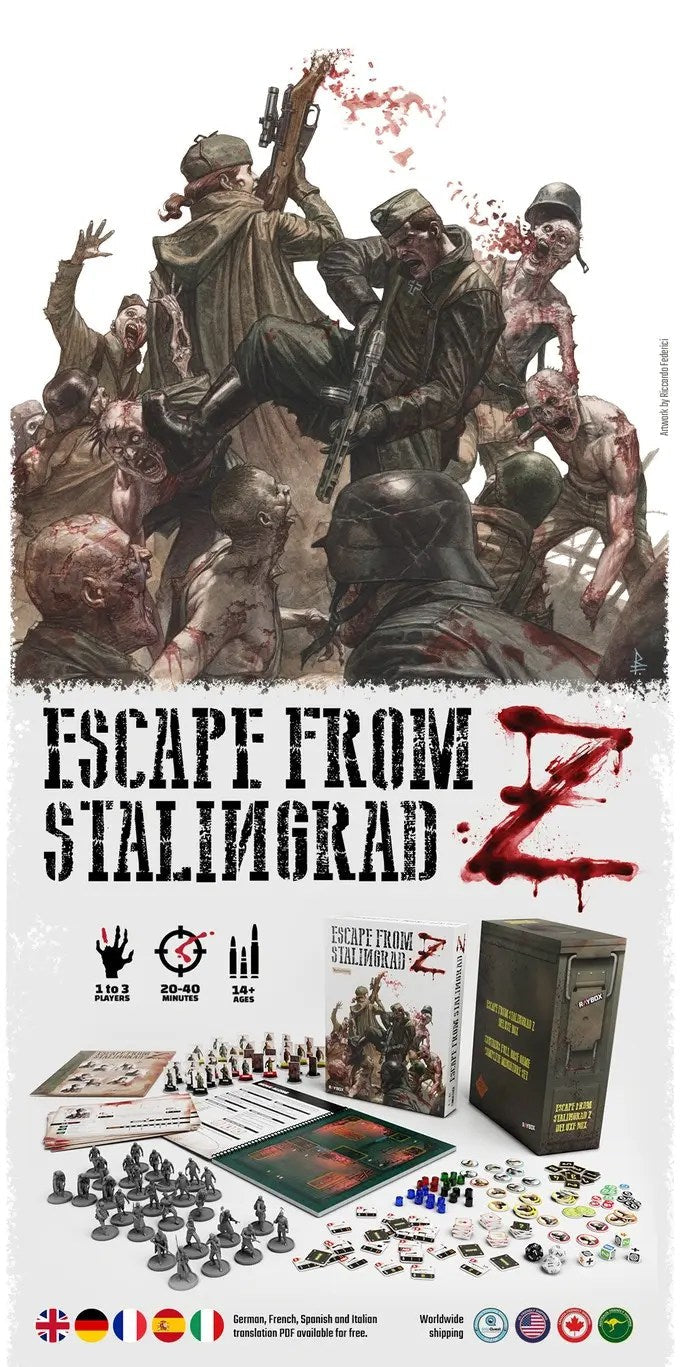 Escape from Stalingrad Z is a solo/coop campaign game of tactical combat which is set in the horrific zombie plague of World War Two.