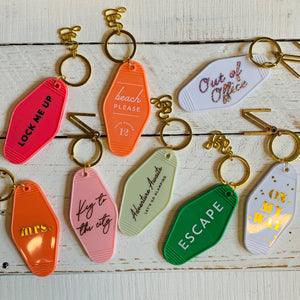 Escape Vintage Motel Style Keychain with Gold Hardware