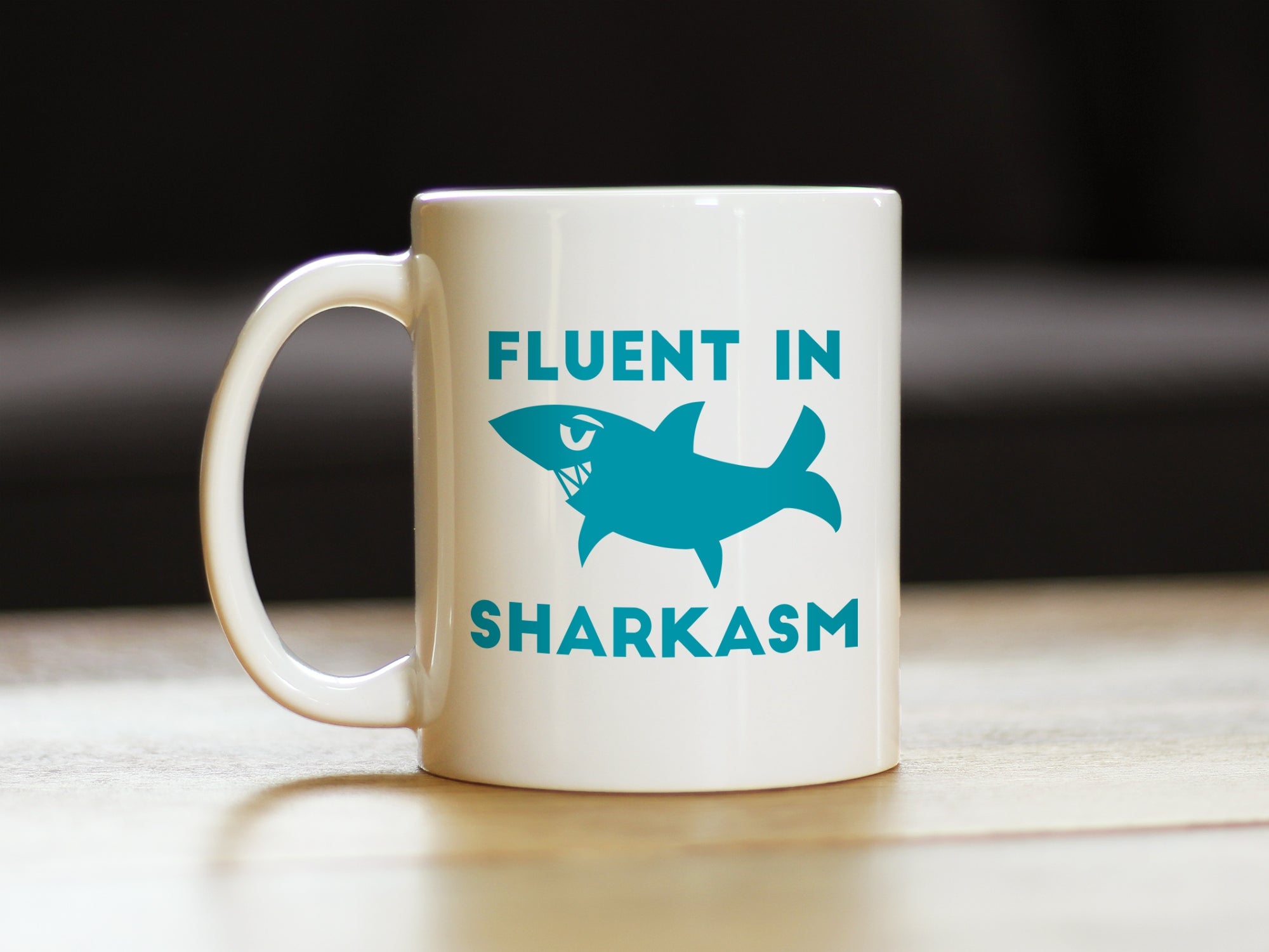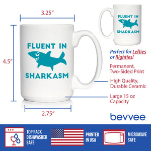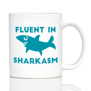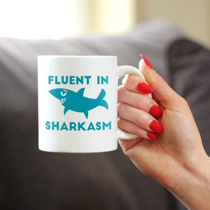Fluent in Sharkasm - Shark Coffee Mug - Cute Funny Gifts for Sarcastic Moms or Dad Joke Lovers
