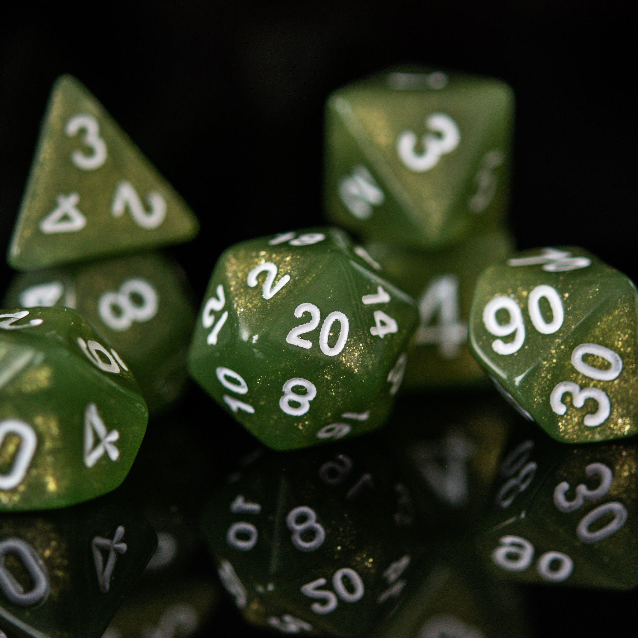 Our acrylic dice are carefully poured into individual molds and cured inside a vacuum chamber to insure no air bubbles are trapped inside the dice. After curing, each individual die is removed from the mold and numbers are painted by hand. These dice are perfect for any RPG and will sure to impress at your upcoming session!