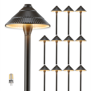 Gardenreet Brass Low Voltage Pathway Lights, 12V Outdoor LED Landscape Path Lights(Traditional Umbrella) for Walkway Driveway Garden Yard (2412)