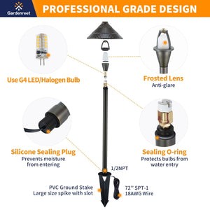 - Easy to Install - PVC stake plugs into the ground to hold the fixture, install replaceable halogen or LED G4 bulbs. Plug into a low voltage landscape system with its own lead and landscape connector, using a low voltage transformer (buy separately), the cable can be buried in a shallow trench, quick and easy, saving you time.