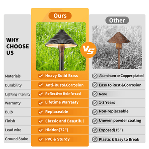 - Solid Brass Construction - Gardenreet low voltage pathway lights are constructed of solid die-cast brass for more excellent durability than aluminum and plastic fixtures; IP65 waterproof, bronze finish, and walkway lights will not corrode, age, or peel over time and last a lifetime with a single installation.