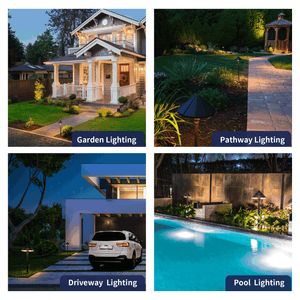 - Wide Applications - Wired low voltage Landscape path and area lights easily illuminate any landscape or outdoor area such as paths, driveways, walkways, patios, gardens, shrubs, ponds and fountains. Give you a beautiful night view or even a security light with high brightness to improve safety at night.