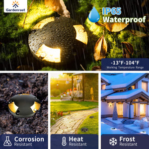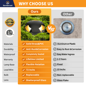 Solid Heavy Brass Top - Gardenreet landscape in ground well lights made with heavy-duty, reliable, and rust-resistant solid brass, these lights are built to last. With greater durability and reliability than aluminum and plastic fixtures, one installation can be used for many years.