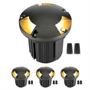Gardenreet Solid Brass Well Lights Low Voltage, IP65 Waterproof LED 12V Outdoor Ground Lights for Garden, Sideway, Lawn, Walkway(Three-Direction Turret 2204C)