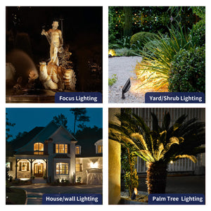 - Wide Applications - The led low voltage landscape lights spot light can shine on outdoor walls and landscape structures such as walls, trees, flagpoles, signs, and other scenes that need to be in focus to give you a beautiful night view or even as a security light to improve safety at night with high brightness.