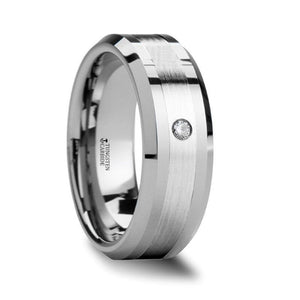 GAUTIER Palladium Inlaid Beveled Tungsten Ring with Single Diamond - 8mm