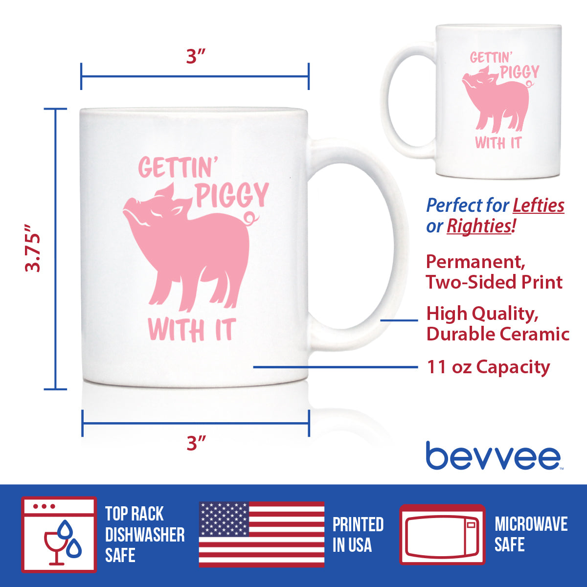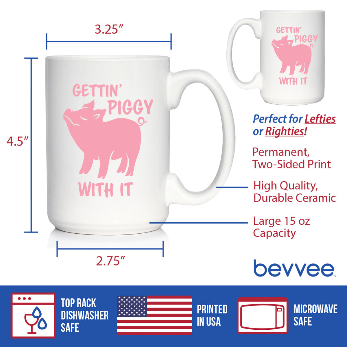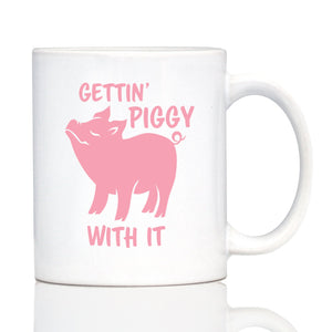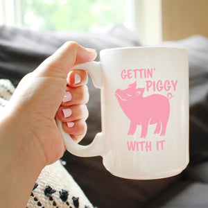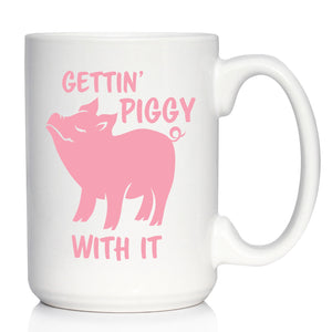 Gettin' Piggy With It - Cute Funny Pig Coffee Mug - Pig Gifts and Decor for Lovers of Piggies