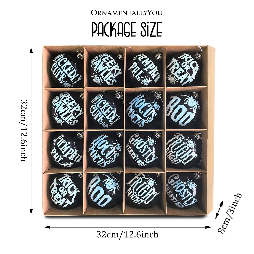 Add a touch of eerie elegance to your Halloween decor with our Ghastly Quotes Ornament Bauble Set of 16. Each 3" round ball in this hauntingly beautiful collection is adorned with classic black and white designs featuring chilling quotes from your favorite horror tales. Perfect for hanging on your Halloween tree, these shatterproof ornaments combine style and durability, ensuring they last through many spooky seasons.