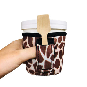 The handle helps you not drop it while you are going ham on some ice cream and the pocket is perfect to hold your spoon in case you do need to set it down. Get your Pint Size Ice Cream Handler™ today and enjoy your favorite ice cream without the mess.