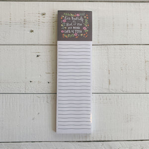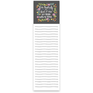 Give Yourself The Best Of You List Notepad with Floral Design | 9.5" x 2.75" | Holds to Fridge with Strong Magnet