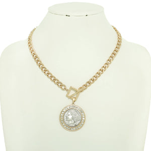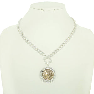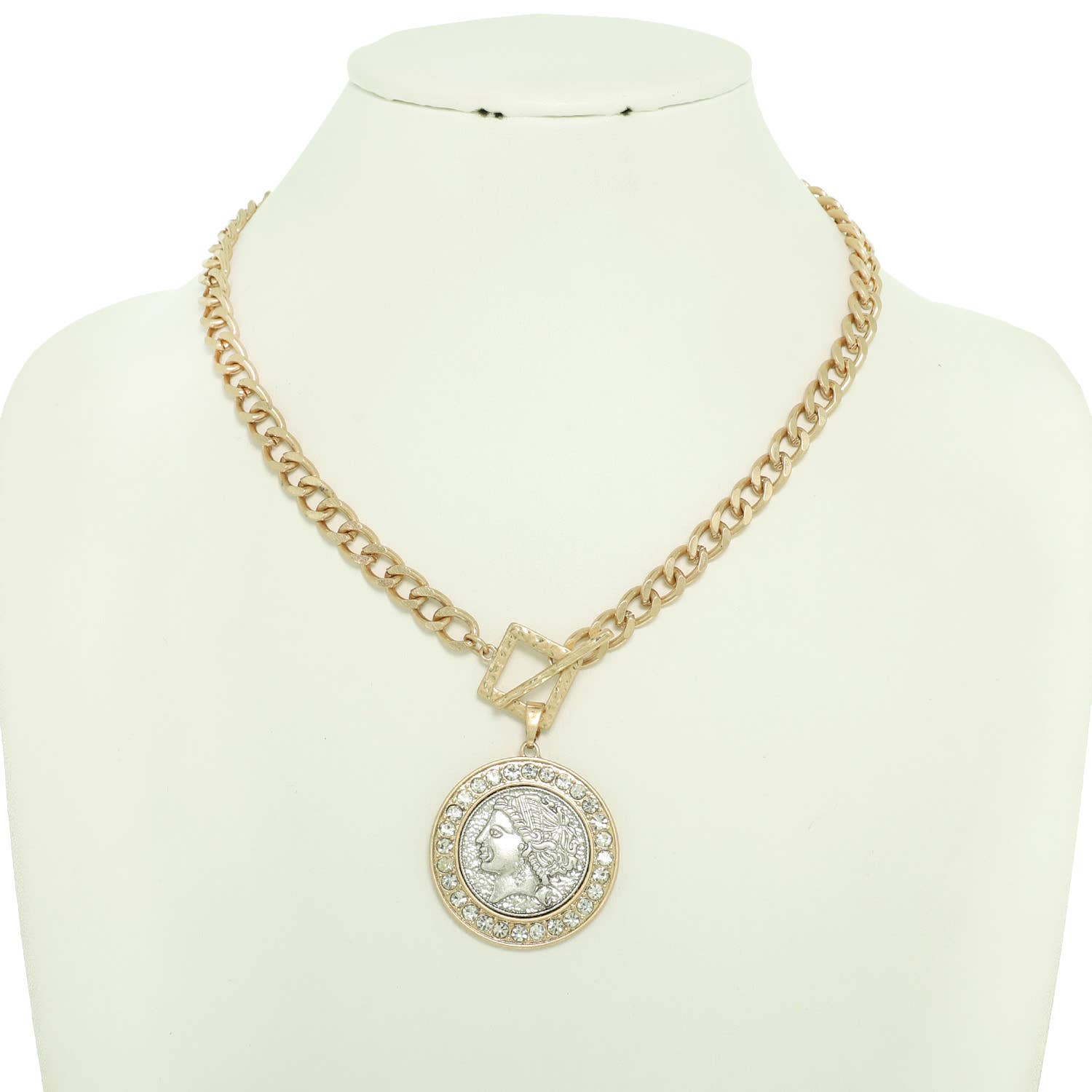 This Greek Roman Goddess Coin Pendant Necklace is a nod to ancient mythology and adds a touch of history to any outfit.