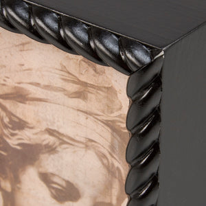 Natural wood frame features a molded resin trim for added interest. A vintage home accent that can be easily displayed in any home or work space.