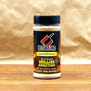 Introducing Butcher BBQ Grilling Addiction, the seasoning that will have you hooked on grilled meat like never before. We've taken the classic SPG (salt, pepper, and garlic) rubs and kicked them up a notch to create a flavor explosion that will leave you craving more. With its blend of garlic, salt, pepper, and a tantalizing hint of lemon, this seasoning hits your taste buds like a flavor freight train. It's the secret ingredient that will make your backyard adventures on the grill truly unforgettable. In fact, it's so good, you might just find yourself dreaming about it. Butcher BBQ Grilling Addiction is the perfect companion for your steak, wild game, fajitas, pork chops, poultry, and even vegetables. Whether you're a back yard chef, a caterer, or simply a grilling enthusiast, this is the spice that will take your culinary creations to new heights. Why settle for mediocrity when you can have the best? Butcher BBQ Grilling Addiction is the ultimate steak spice that will elevate your grilling game to legendary status. Its versatility allows you to use it as a grill marinade, adding an irresistible depth of flavor to your meats and veggies. So, get obsessed with flavor and let Butcher BBQ Grilling Addiction be your secret weapon. Once you experience the mouthwatering magic it brings to your dishes, there's no turning back. Embrace the addiction and become the grill master you were born to be.