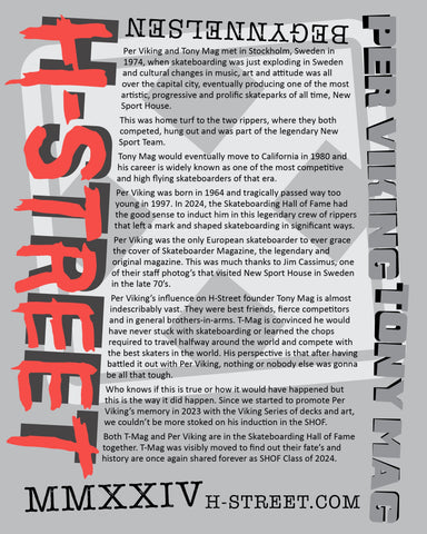 We would like to congratulate our founder, Tony Mag on his induction into the Skateboarding Hall of Fame, Class of 2024, along with his greatest inspiration, Swedish ripper per Viking.