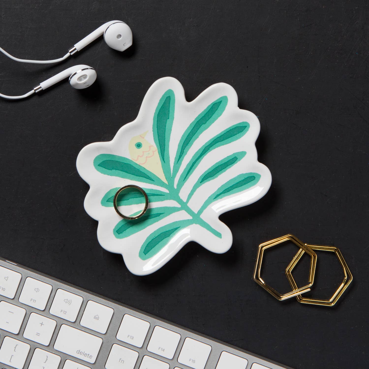Haven Palm Tree Shaped Ceramic Trinket Tray | Catch-all Decorative Tray | 4.75” x 4”