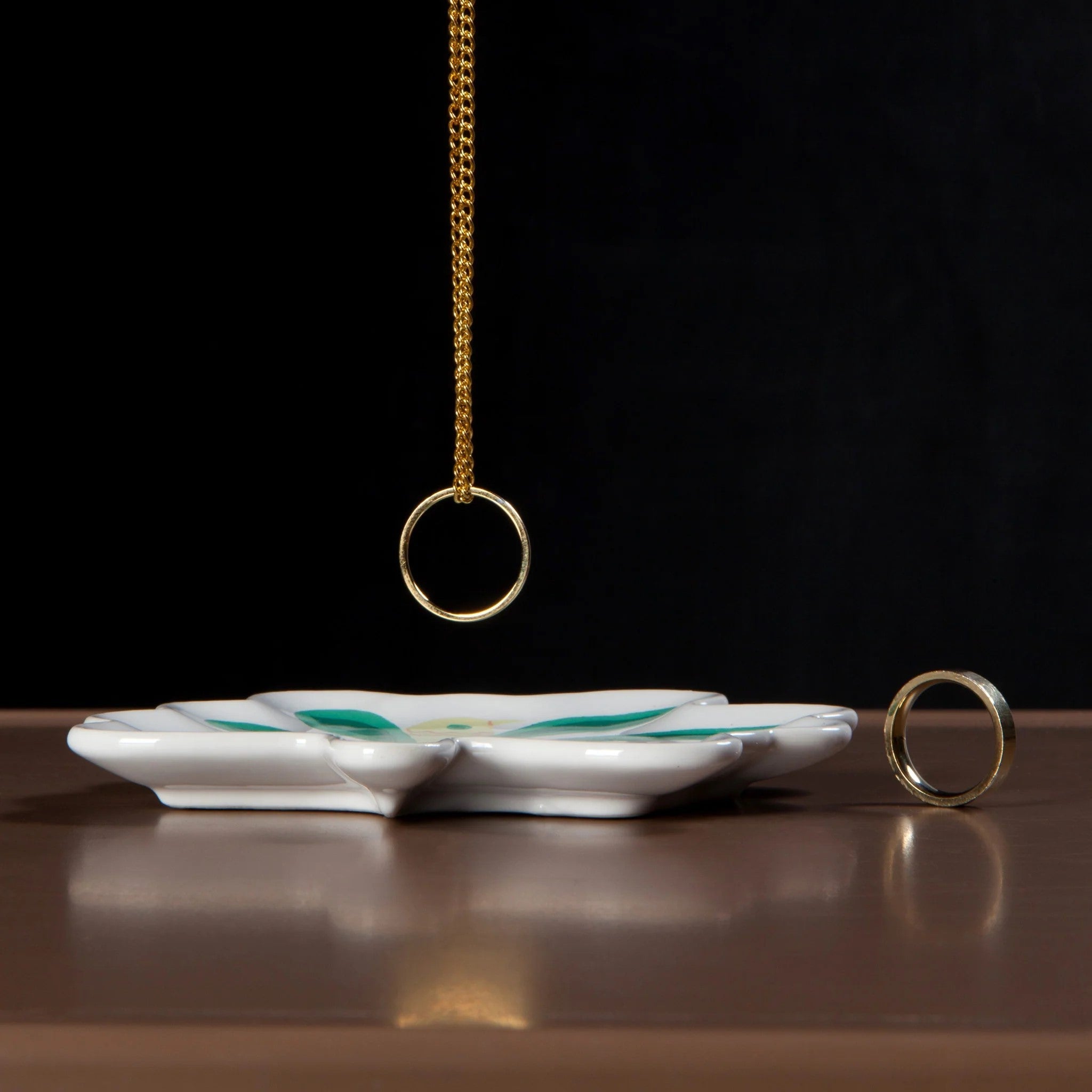 Calm the chaos of staying organized by placing your treasures in the tropical, serene, and playful Haven Palm Tree Shaped Ceramic Trinket Tray!