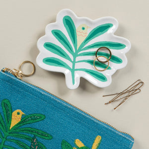 An inquisitive bird and a leaf that's inspired by paradise bring relaxation and joy to keeping your things together.
