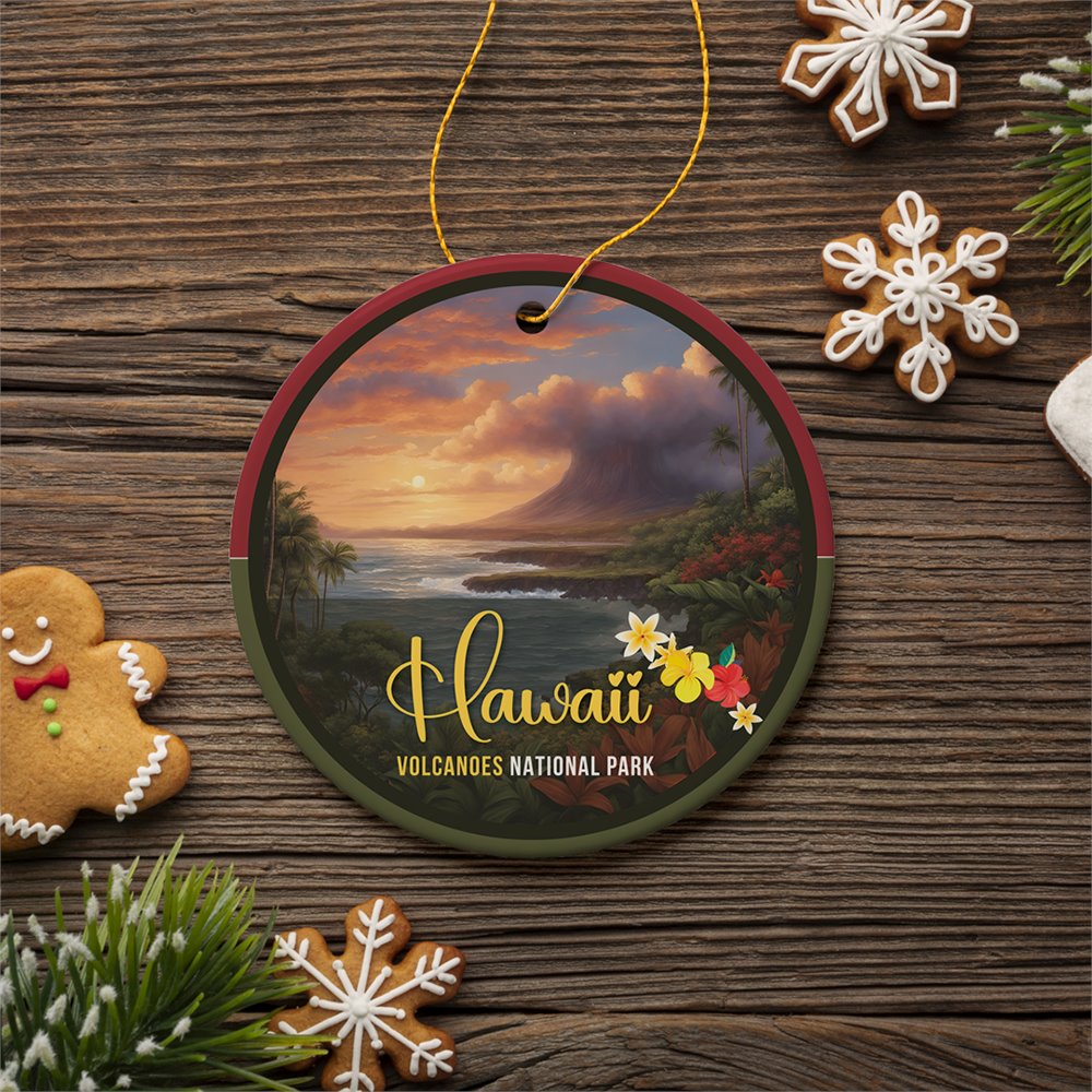 Hawaii Volcanoes National Park Retro Style Ornament, Hawaii USA Tourist Attraction and Gift