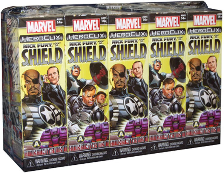 Marvel HeroClix: Nick Fury, Agent of S. H. I. E. L. D. features past and current agents of the international spy organization S. H. I. E. L. D. as well as nefarious agents of the super-terrorist group Hydra! Marvel HeroClix: Nick Fury, Agent of S. H. I. E. L. D. also features 15 different ID Cards randomly inserted into boosters—collect all ID Cards to be able to call your favorite heroes (and agents) into battle! Marvel HeroClix: Nick Fury, Agent of S. H. I. E. L. D. introduces the all-new Assembl-A-Figure— randomly inserted into packs are 5 unique 3D Objects and a Base/Card that all assemble to create Tony Stark’s ultimate Hulk-deterrent— the Hulkbuster Mk II Armor! Marvel HeroClix: Nick Fury, Agent of S. H. I. E. L. D. includes sub-themes of Howling Commandos, Invaders, and iconic Marvel heroes during their enlistment as agents of S. H. I. E. L. D. ! The Marvel HeroClix: Nick Fury, Agent of S. H. I. E. L. D. set has 86 figures to collect: 24 Common figures (plus one Prime), 18 Uncommon figures (plus one Prime), 16 Rare figures (plus one Prime), 13 Super Rare figures (plus one Prime), 5 Chase figures, 1 Hulkbuster Mk II Armor Assembl-A-Figure.