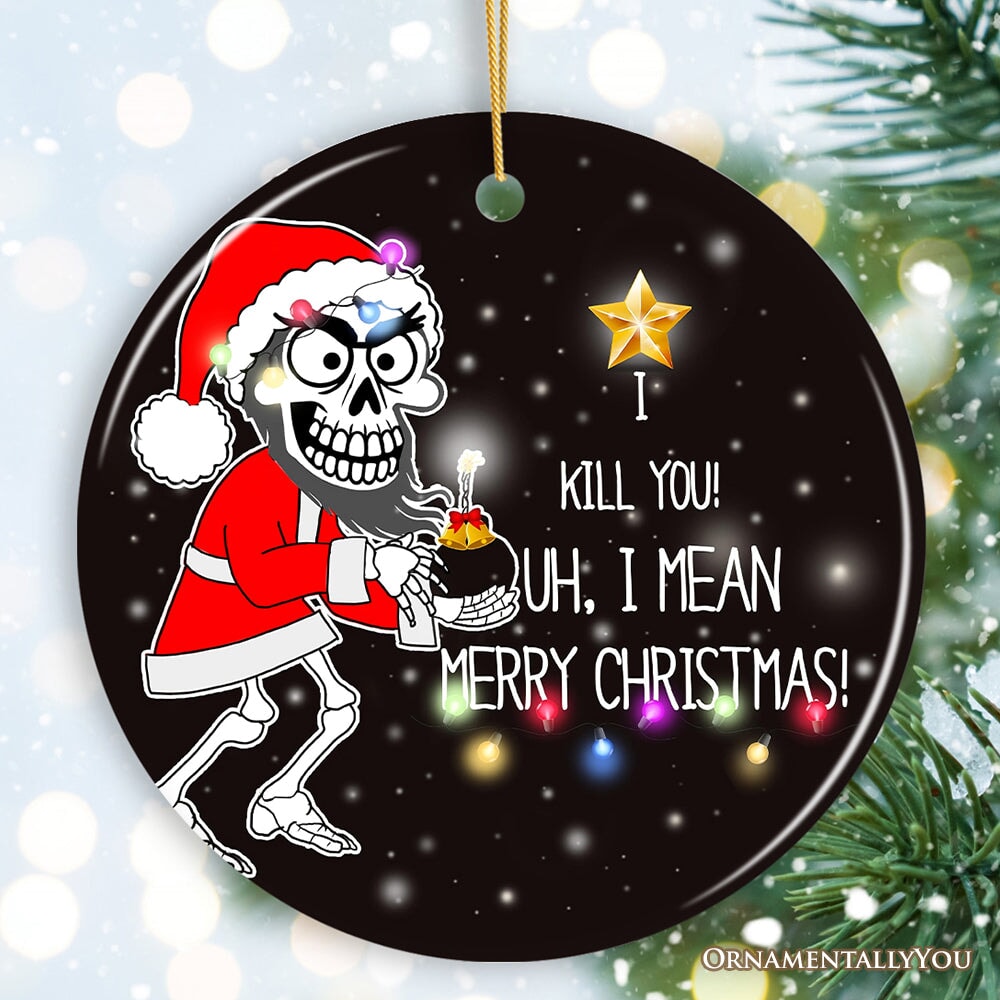 Hilarious Skeleton Bomber Christmas Ornament, Bomb for a Present Funny Comedy Gift