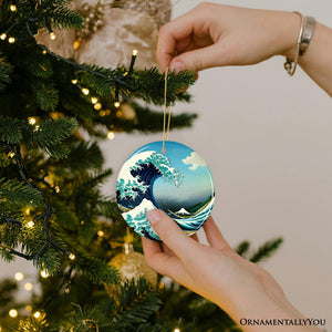 Captured in the cresting fury of nature’s might, this ceramic ornament brings Hokusai’s iconic 'The Great Wave off Kanagawa' to life. Each turbulent wave and tranquil horizon whispers tales of ancient artistry and timeless beauty, a perfect blend of tradition and elegance for your holiday decor. Let this piece become a serene yet powerful focal point, evoking the endless rhythm of the sea. 🌊🖼️