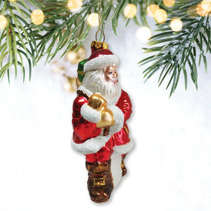 Holly Jolly Santa Claus with Gift Bag and Toys Blown Glass Christmas Ornament