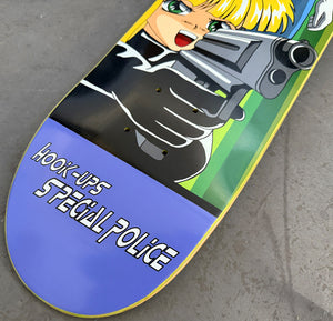 Special Police 7.5 X 31 HAND SCREENED.This board is printed using the original films from 1996 by Chicken at Screaming Squeegees. top color veneer may vary. Each board is signed by me on the top. these boards are part of the Hook-ups 30th year anniversary.