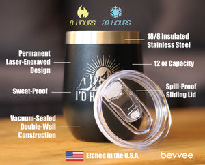 Our 12oz. stemless wine tumblers feature stainless steel double-wall construction, vacuum insulated for 2X cold and heat retention compared to glass or plastic containers! Etched in America.