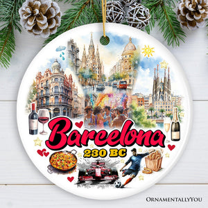 Illustrated Barcelona Landmarks Ceramic Ornament, Spain Travel Souvenir and Christmas Gift