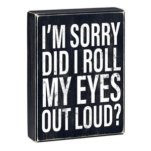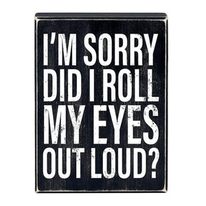 I'm Sorry Did I Roll My Eyes Out Loud? Box Sign | Wooden Box Wall Tabletop Decor | 6" x 8"