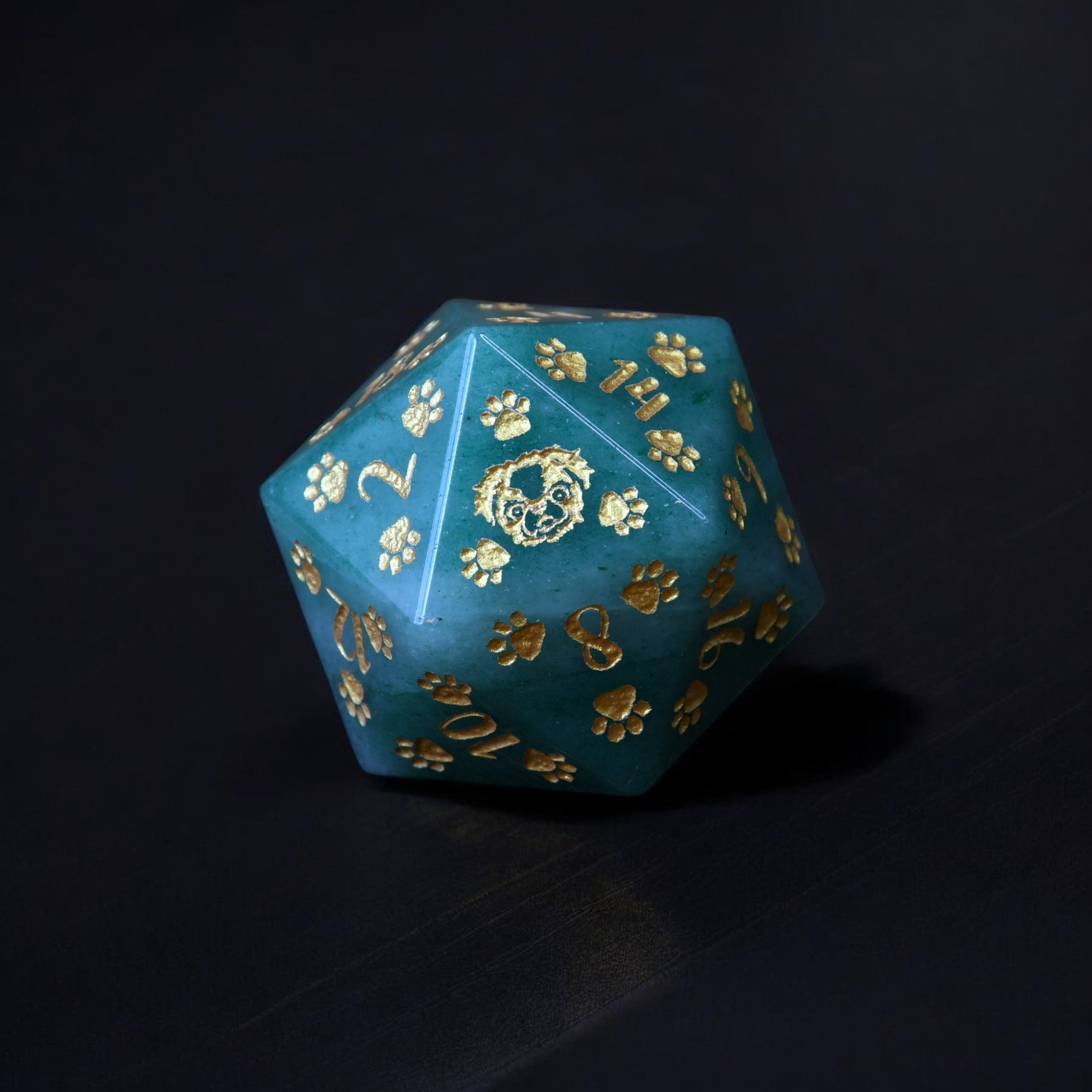 Every D20 is hand carved from gemstone. Designs are then engraved into each side and hand painted. Gemstone dice are never guaranteed to have a perfectly balanced weight; however, each of our dice sets are always well weighted and well balanced.