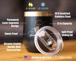 Just Unwind - Cat Wine Tumbler Glass with Sliding Lid - Stainless Steel Travel Mug - Unique Cat Gifts for Women and Men