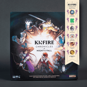 Kinfire Chronicles: Night’s Fall is a cooperative campaign game for 1-4 players that blends thrilling fantasy adventure with tactical, edge-of-your-seat combat. Play as one of six unique Seekers, sworn to protect the city of Din’Lux and help rebuild the world beyond. Armed with kinfire lanterns, you’ll brave the Starless Nights, battle the creatures that emerge, and guard each others’ backs against the malevolent forces trying to stop you.