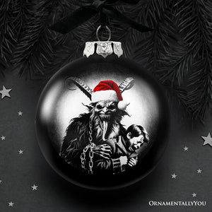 This eerie glass ornament features a menacing Krampus portrait, perfect for adding a touch of horror to your Christmas tree or Halloween decor. Crafted with high-quality printed RGB imagery, this black ornament captures the sinister essence of the holiday folklore character, making it an ideal choice for horror enthusiasts and gothic decor lovers. Elevate your festive decorations with this unique, spooky, and eye-catching piece that seamlessly blends the chills of Halloween with the warmth of Christmas. 🎄👹🖤