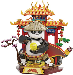 Po looks impressively powerful, wearing a bamboo hat and a flowing cape, ready to unleash his ultimate move. The set comes with two interchangeable facial expression masks, allowing fans to switch according to their preference, replicating different emotions from the film. Additionally, Po's eight trigrams ball has built-in lighting component that simulates the effect when Po performs his powerful moves in the movie, offering collectors a sense of being immersed in the film's epic moments! The base section artfully replicates the training grounds outside the Jade Palace, presenting fans with a miniaturized version of a memorable iconic movie scene with significant sentimental value.