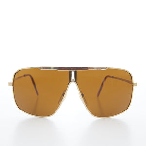 These large 80s Pilot sunglasses feature a curved squared frame with a distinctive brow line accent. New old stock. never worn. Great condition. UV protection.