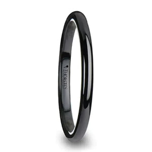 LAUREEN Black Domed Shaped Ceramic Wedding Ring for Her - 2mm