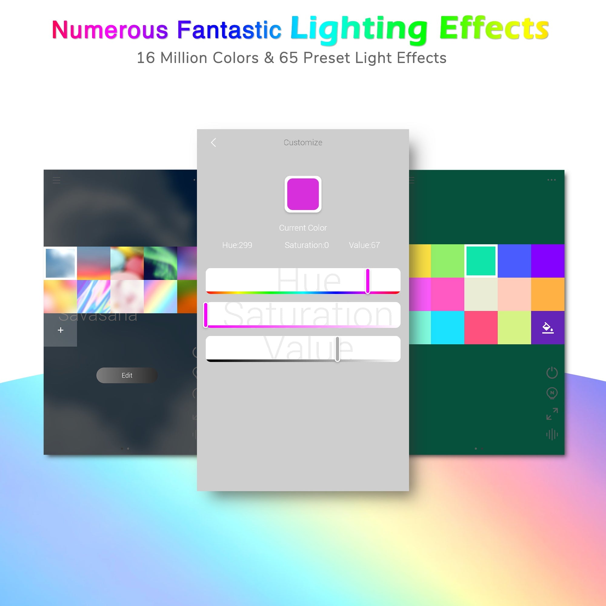 - Easy App Control & Music Interaction: Using smartphone to make detailed adjustment for color, brightness via WIFI(controller needed)
