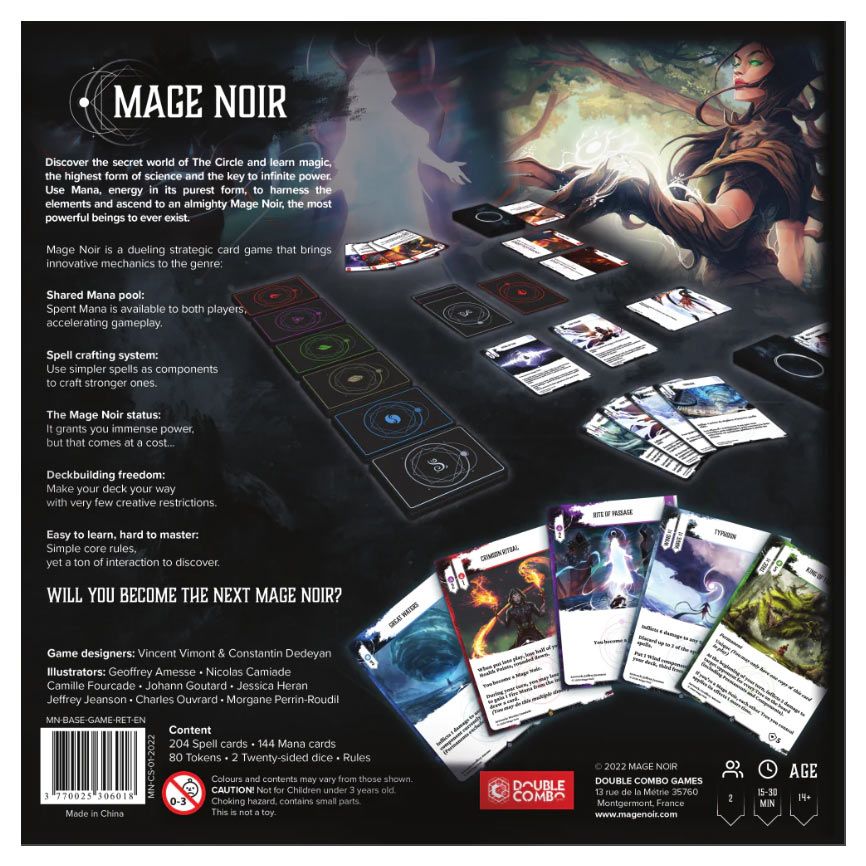 Thanks to its fresh mechanics packaged in simple rules, Mage Noir is the perfect game to discover the thrill of outwitting your opponent with your magical abilities.